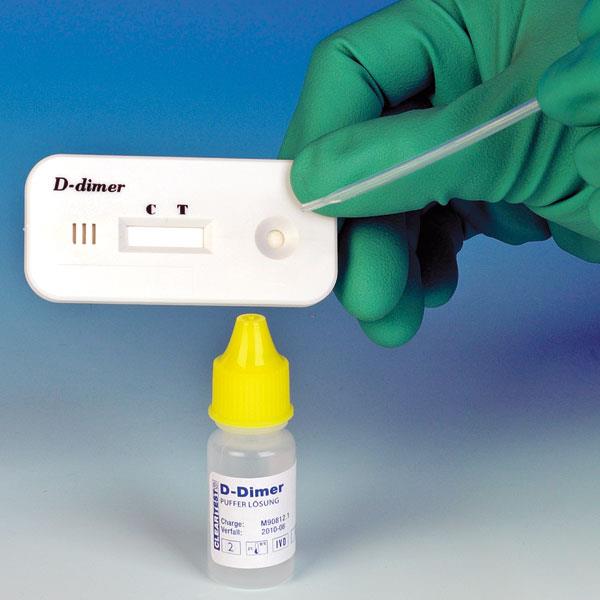 Bei der Spaltung des Proteins Fibrin, das für die plasmatische Blutgerinnung eine entscheidende Bedeutung hat, entsteht das Produkt D-Dimer. Setzt im Körper eine Blutgerinnung ein, steigt die Konzentration des D-Dimers im Blut. Dieser Test ermöglicht den Ausschluss einer Lungenembolie (LE), tiefer Venenthrombosen (TVT) oder einer disseminierten intravasalen Koagulopathie (DIC).