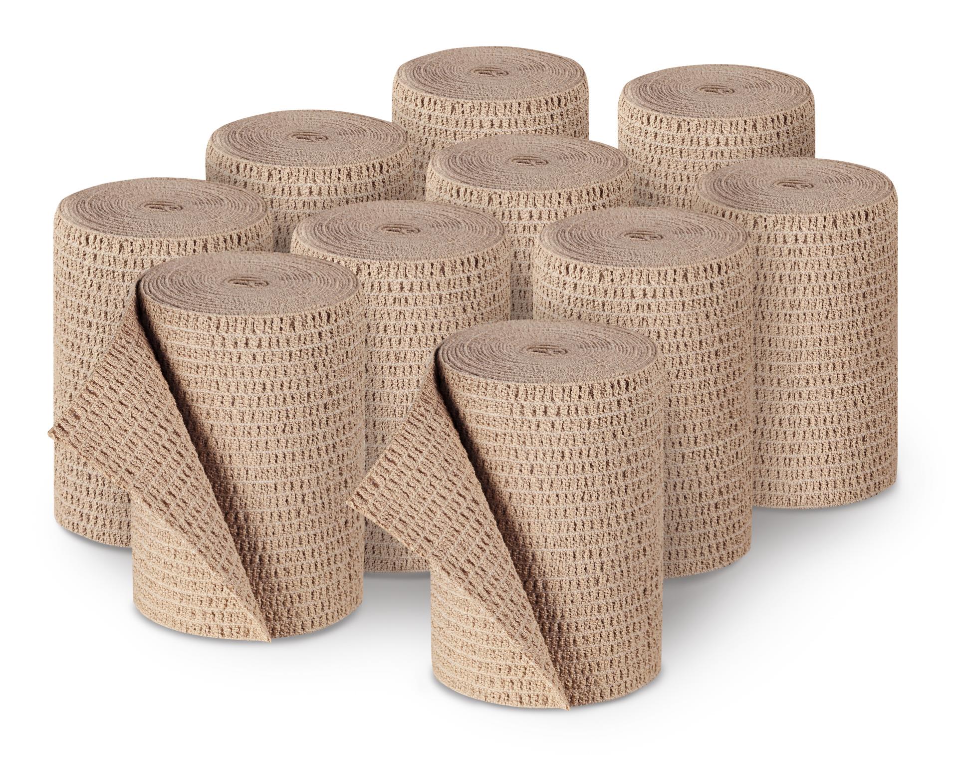 Dauerelastische Langzugbinden mit gut dosierbarer Kompression für anschmiegsame, haltbare Verbände; wie alle Langzugbinden in Ruhelage abzunehmen; atmungsaktiv und hautverträglich, alterungsbeständig, waschbar bis 60 °C, sterilisierbar (Dampf A 134 °C); hautfarben, mit Verbandklammern; in zwei Ausführungen für unterschiedliche Kompression erhältlich.