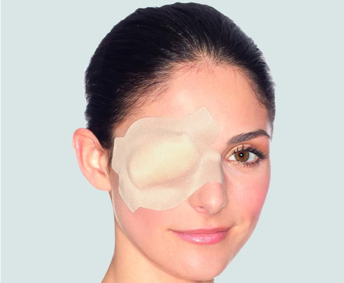 (K = Kompresse) Gebrauchsfertiger, elastischer Pflasterzuschnitt mit Watte-Mull-Kompresse, zur Wundversorgung am äußeren Auge