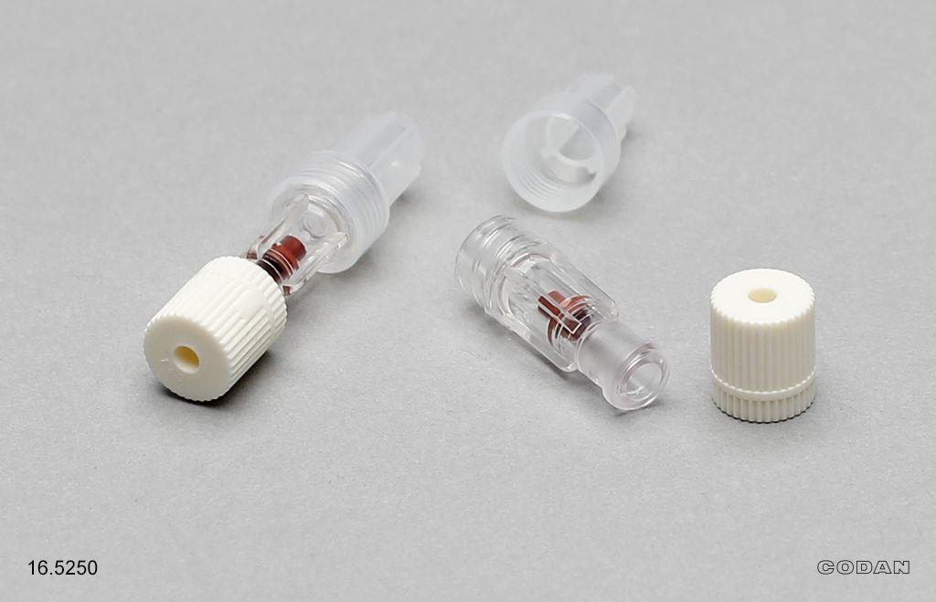 Luer-Lock weiblich und männlich Aus Polyethylen (PE) Zum idealen Verschließen aller weiblichen und männlichen Luer-Anschlüsse Steriler Verschluss aller Arten von Anschlüssen am Infusions-Set Sicherer Verschluss von vorgefüllten Spritzen In rot, blau und weiß erhältlich