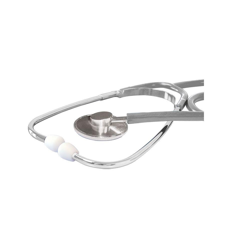 - Ausgezeichnete Akustik durch ultraleichtes Aluminium-Bruststück, außenliegende Ohrbügelfeder, mit weißen, harten Schraub-Ohroliven, 100%