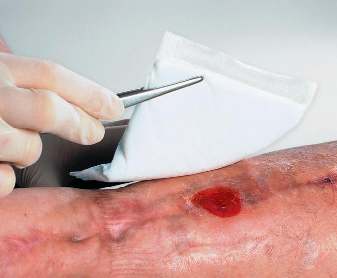 Mehrschichtige Saugkompresse, für mittel bis stark exsudierende Wunden, wundfreundlich, mit Wäscheschutz, unsteril